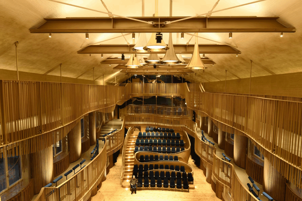 Salen är ritad av den kända italienska arkitekten Giorgio Palu, och den världsledande japanska akustikern Yasuhisa Toyota, som även designat akustiken för bland annat Walt Disney Concert Hall i Los Angeles och Pierre Boulez Saal i Berlin. Med dynamisk design och centrerad scen är varje konsert i Drottning Silvias konsertsal en unik och inspirerande upplevelse.
